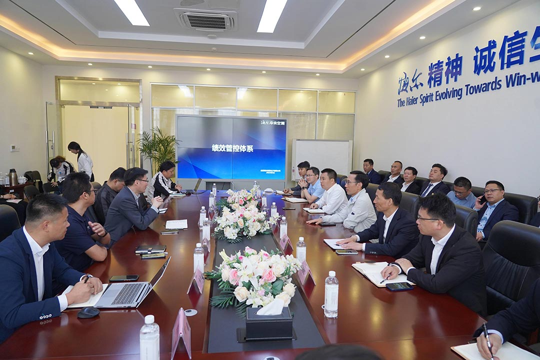 随后在双方的交流会上,海尔先后分享了绩效运营体系管理、质量管控体系及做法以及海尔产品及市场营销体系。三轮分享干货满满,海尔的伙伴充分展示了企业在绩效运营、质量管控、产品力三个维度承接精细化管理的成果,更展示了各个维度的管理逻辑、管理体系、管理工具以及管理心得。