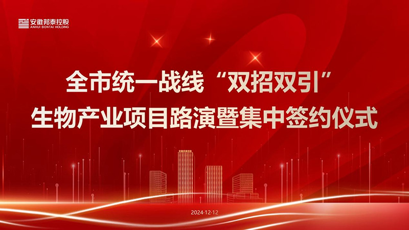 2024年12月12日上午,合肥市统一战线“双招双引”生物产业项目路演暨集中签约活动在邦泰科技城A座19楼报告厅举行。